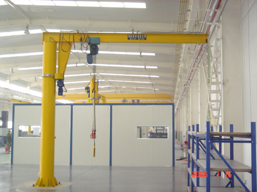 柱式旋臂起重機(jī)是CD1、MD1型電動(dòng)葫蘆及手拉葫蘆配套使用的一種小型起重機(jī)械。葫蘆沿工字鋼作直線運(yùn)動(dòng)和旋臂作旋轉(zhuǎn)運(yùn)動(dòng)。該系列產(chǎn)品有BZ型、BZA型、BZB型、BZC型、BZY型及Bx型墻式吊。